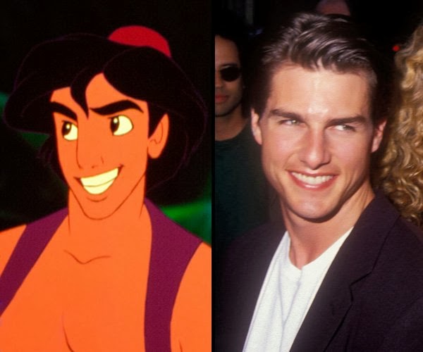| Aladdin/Tom Cruise Aladdin (1992) aslinya dibuat menyerupai Michael J. Fox, tetapi produser merasa dia terlihat kekanak-kanakan, dan akhirnya menambahkan karakter gagah Tom Cruise. |